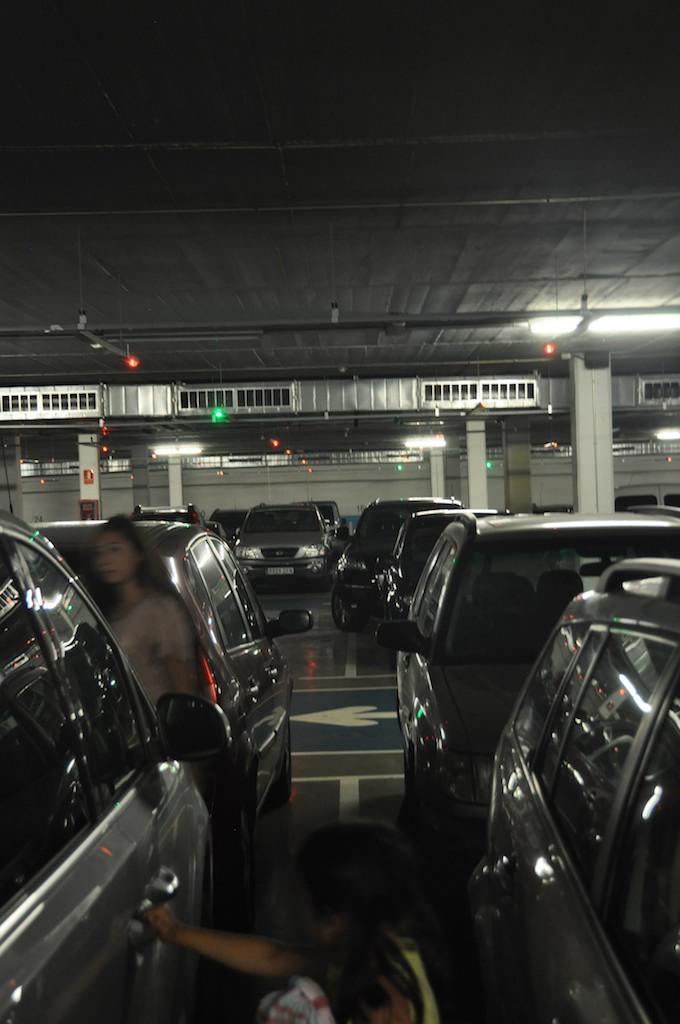 Caption: Red and green lights in the garage let you see from a distance where open parking places are