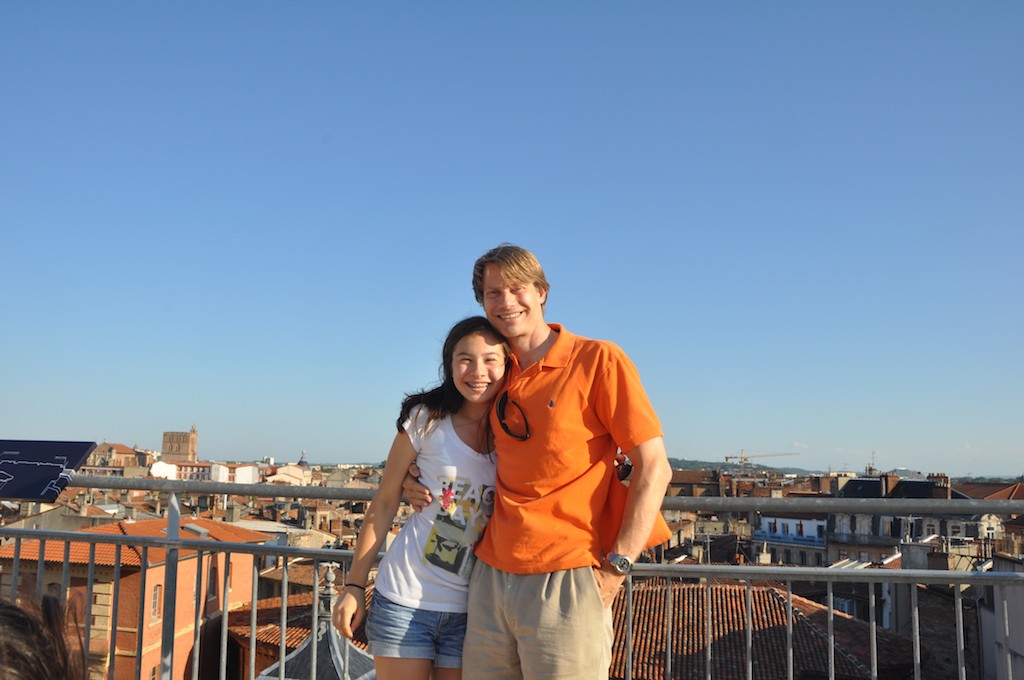 Caption: Hanging out on the roof deck of Galeries Lafayette