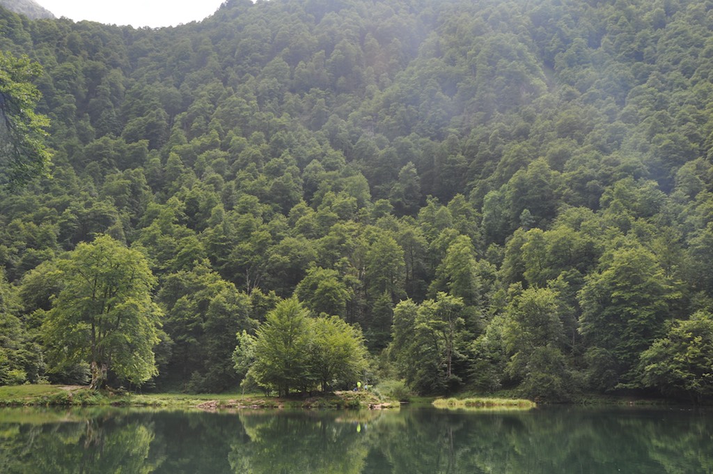 Caption: Lac de Bethmale is most of the way up the Col de la Core (a Category 1 climb). Pascale, Kepler and I made it up